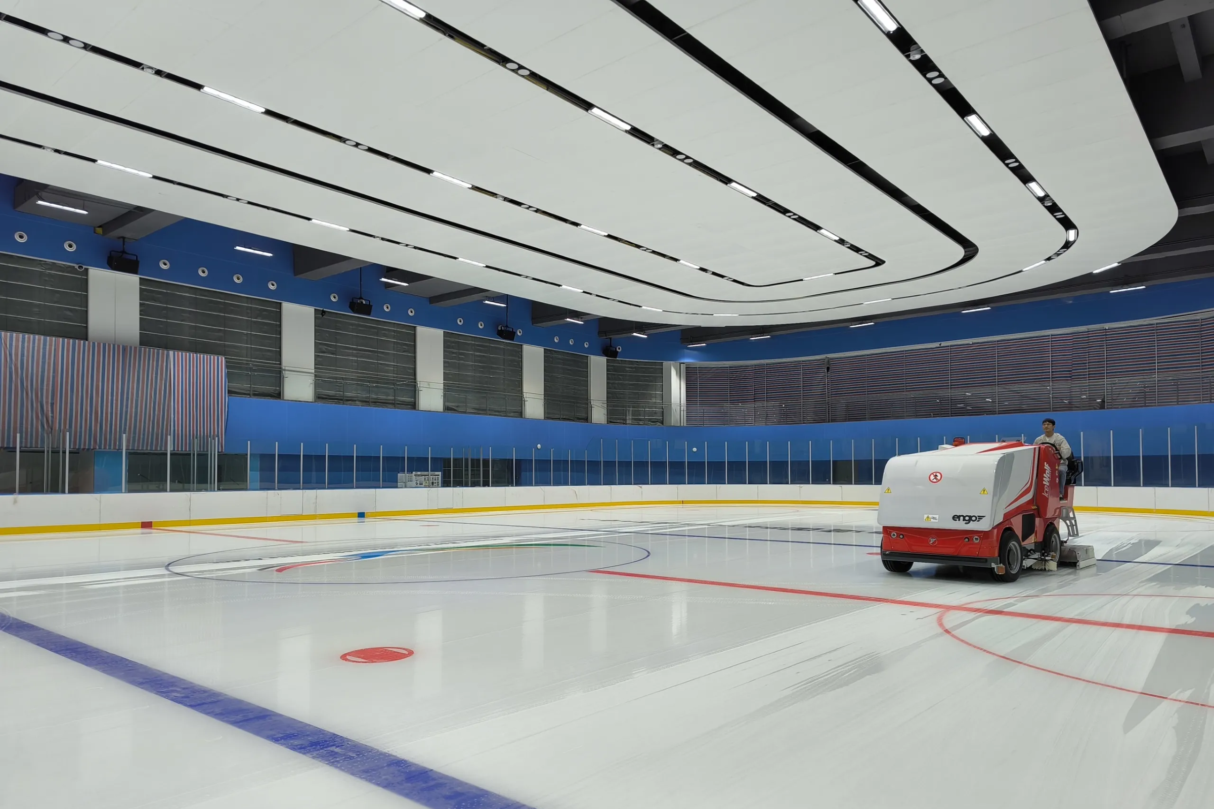 位于深圳市福田区核心区域的深圳市体育中心在近年的升级改造中重磅设立专业滑冰场——鹏湾国际冰场,内置两片国际标准冰面,打造南方全天候专业冰上运动空间。Engo为其提供浇冰设备及相应技术服务支持,助力打造专业冰面。